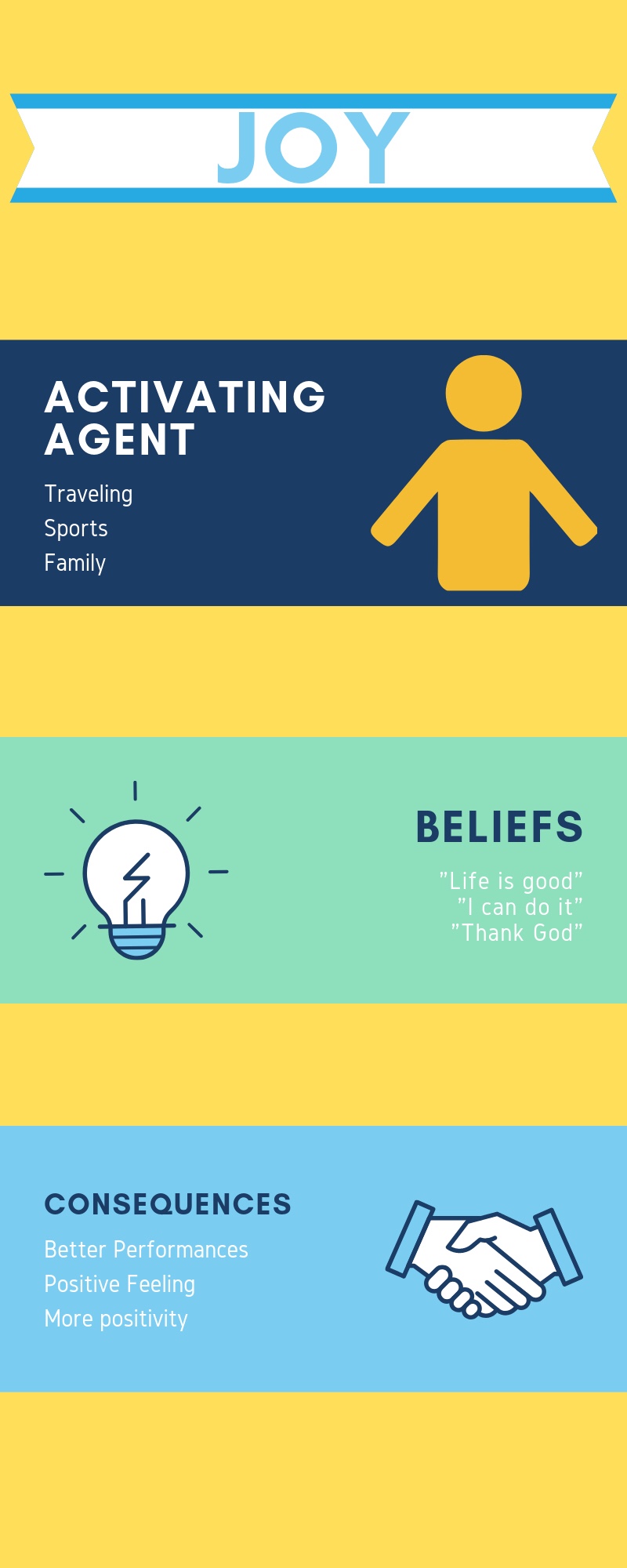 I can apply this to my life by recognising my emotions and understand why I’m feeling that way. Then try to recognise the appropriateness of my emotions. I can see the whole process of this with the ABC model. This shows the Activating agent like an actual event leading to my Beliefs and that’s what I use to evaluate rationally or irrationally and then finally Consequences which is my emotions and behaviours.